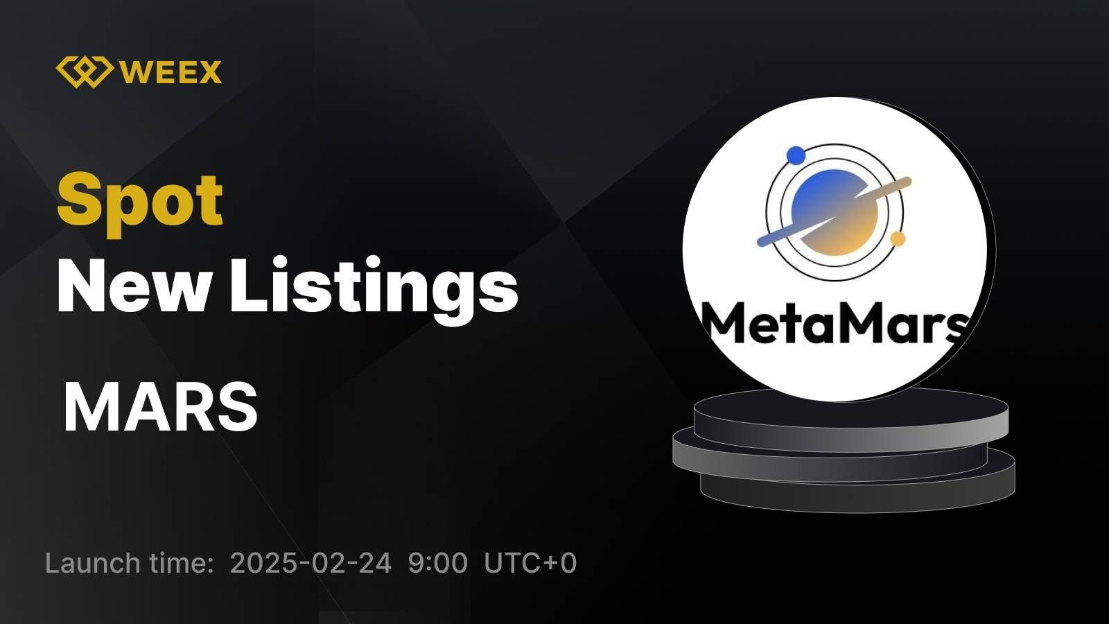 We are pleased to announce that MARS will be listed on WEEX spot trading. Details are as follows:
